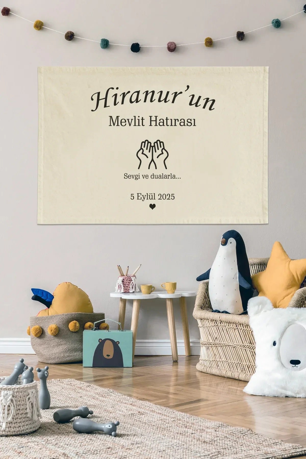 Kişiye Özel Mevlit Hatıra Flaması Pamuk Kanvas Kumaş - Klasik 104