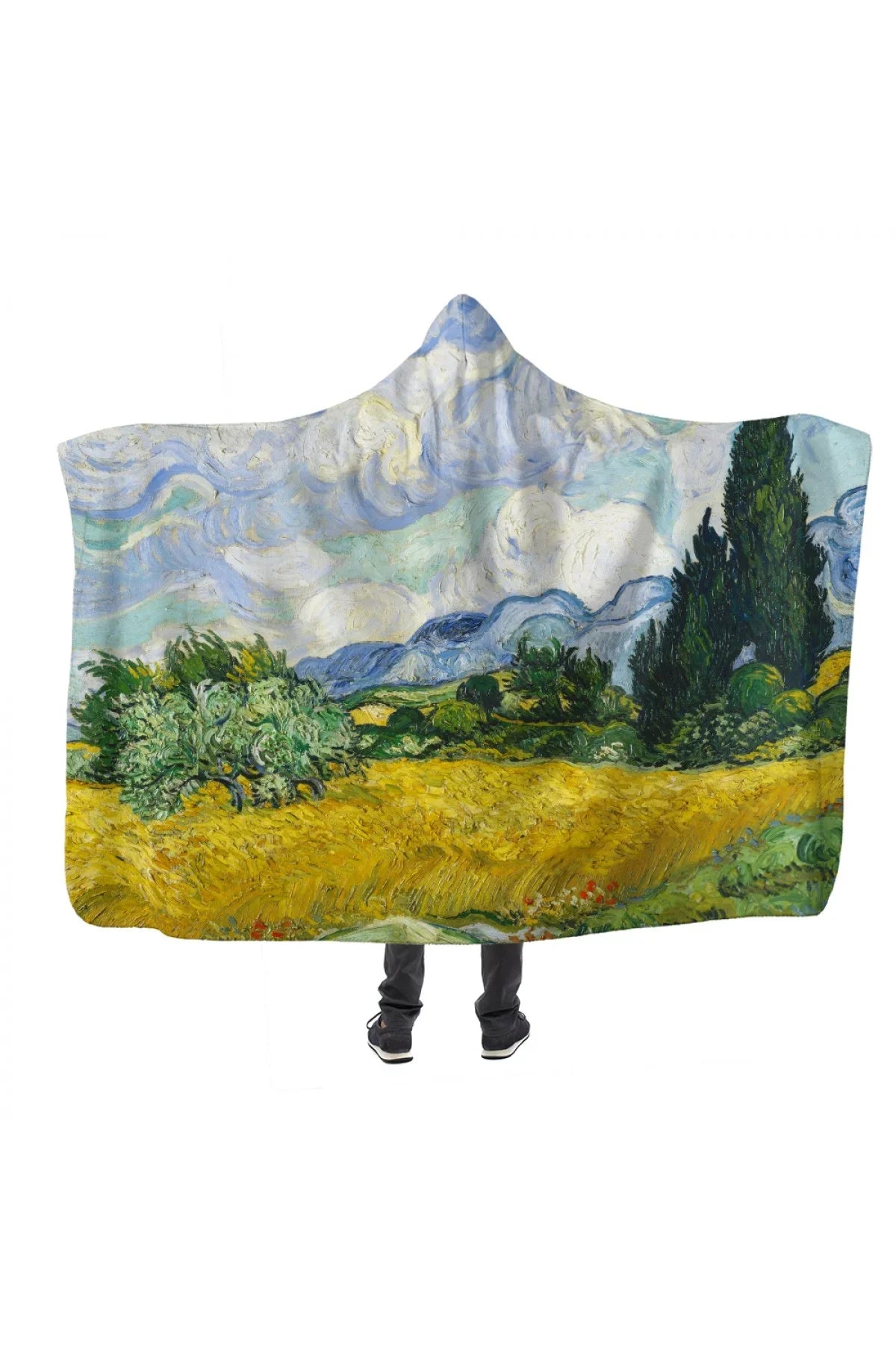 Van Gogh Selvi Ağaçlı Buğday Tarlası Kapşonlu Battaniye